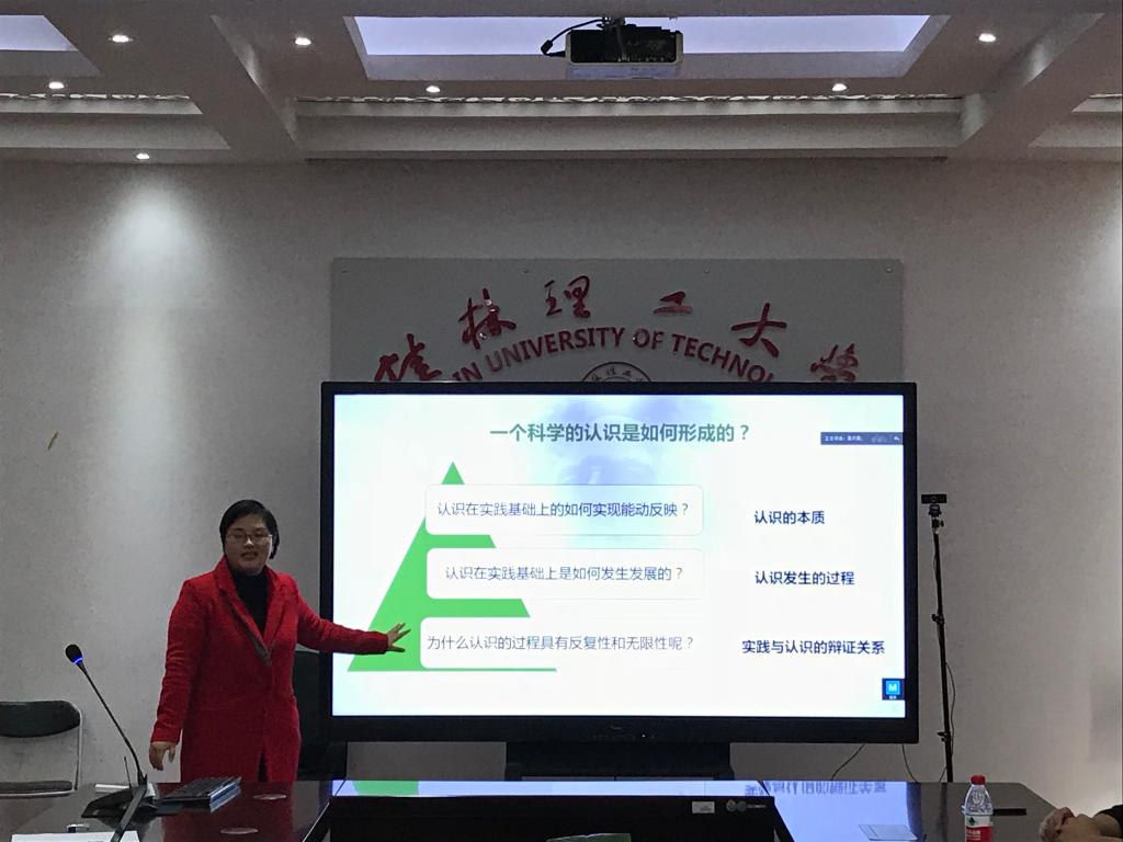 四位参赛教师按抽签顺序依次上台,每人进行15分钟教学展示与分享。参赛教师围绕“新文化运动与思想解放的潮流”“探索认识的过程”“弘扬新时代的爱国主义”“建设现代化经济体系”主题,深入阐释了马克思主义理论魅力、思想政治理论课是落实立德树人根本任务的关键课程,现场讲课精彩纷呈。