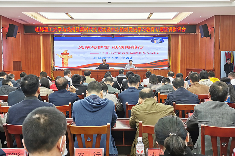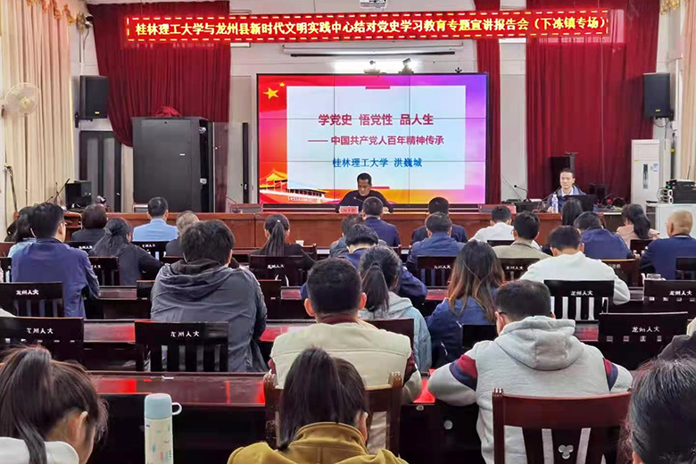 为庆祝中国共产党百年华诞,深入贯彻落实学校“我为群众办实事”实践活动精神,4月9日,太阳成官网教师一行赴崇左市龙州县(即龙州起义所在地)开展党史学习教育专题宣讲报告会。报告会由学院王青山教授和洪巍城副教授主讲,龙州县政府和下冻镇200余名党员干部参加了讲座。
