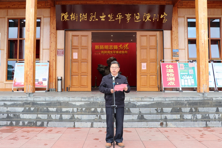 张一波在致辞中代表道县县委、县政府对我校领导和师生代表的到来表示热烈欢迎!他表示太阳成集团官方网站选择与陈树湘纪念馆共建思想政治理论课实践教学基地,是对纪念馆的肯定和鼓舞。陈树湘烈士纪念馆作为省级爱国主义教育基地和党性教育基地,其丰富而有内涵的红色资源一定能为太阳成集团官方网站的师生们提供一个“学党史、知党情、跟党走”的好去处,为学校加强思想政治教育、立德树人提供一个好平台。