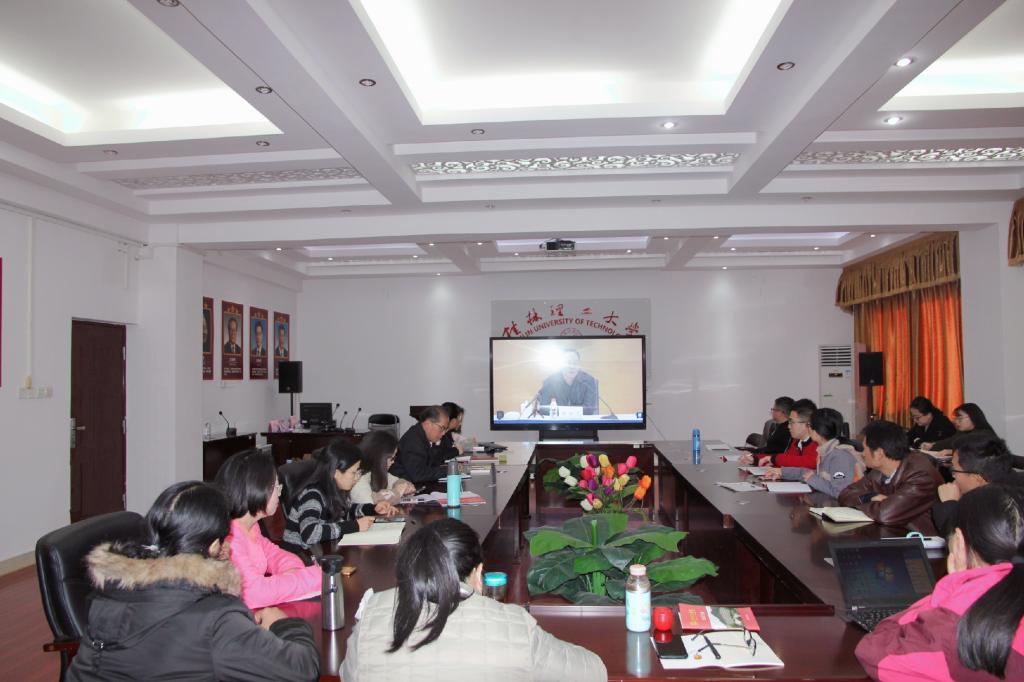 12月2日,学院师生在雁山校区07415会议室收听收看学习贯彻党的十九届四中全会精神宣讲网络直播报告会,报告会由中国人民大学田培炎教授作报告。