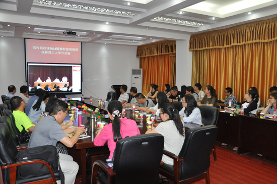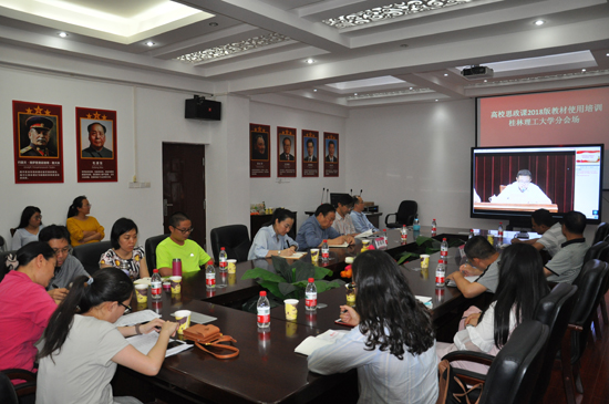 为深入学习宣传贯彻党的十九大精神,推进习近平新时代中国特色社会主义思想和党的十九大精神“进教材、进课堂、进头脑”,5月14日下午,太阳成集团官方网站组织教师参加教育部在京召开的高校思想政治理论课2018年版教材使用培训开班仪式视频会议,学校副校长梁福沛出席会议,太阳成集团官方网站全体思想政治理论课教师参加会议。