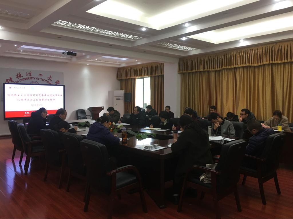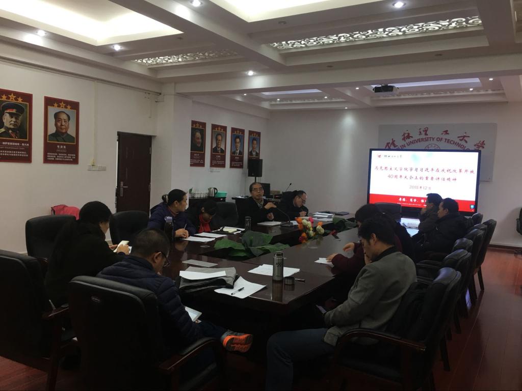 12月25日下午,学院在雁山校区07415会议室召开全体教工会议,传达学习习近平在庆祝改革开放40周年大会重要讲话精神。学院党委书记王青山主持会议。