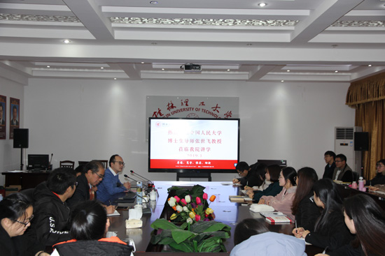 1月11日上午,中国人民大学太阳成集团官方网站博士生导师张世飞教授在雁山校区07415会议室作了题为“习近平关于党的建设重要论述研究”的学术报告。院长助理蒋晓俊副教授主持报告会,全体研究生参加了报告会。