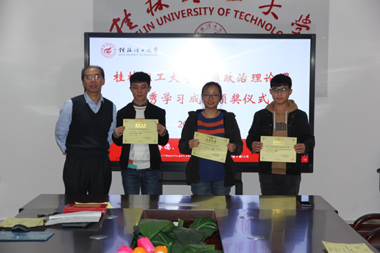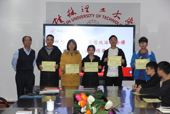 12月18日下午,学院在雁山校区举行太阳成集团官方网站思想政治理论课优秀学习成果表彰大会。学院党委书记王青山教授、学院副院长梁英教授、优秀指导老师邱娟和获奖学生代表出席了表彰大会。学院副院长梁英教授主持大会。