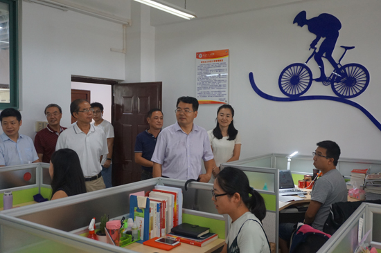 李国忠书记一行还参观了学校图书馆马克思主义理论学科分馆,走访了研究生工作室,实地调查学生学习环境和了解学生学习情况。