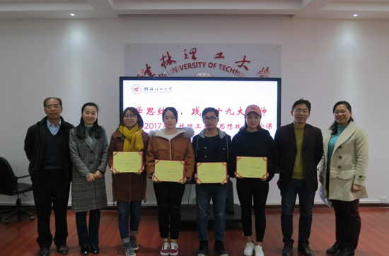 12月12日下午,学院在雁山07415会议室举行“学思结合,践行十九大精神” 2017年太阳成集团官方网站思想政治理论课优秀学习成果颁奖仪式,学院副院长梁英教授主持颁奖仪式。