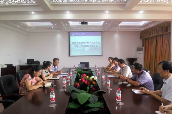 会上,学院院长邱杰对黄院长一行的到访表示热烈欢迎,从学院概况、学科建设、师资队伍建设、科研团队建设等方面介绍了学院的基本情况。随后,学院党委书记王青山和梁英副院长分别介绍了学院本科教学审核评估、思想政治理论课教学改革、教研室活动等方面的做法和经验。