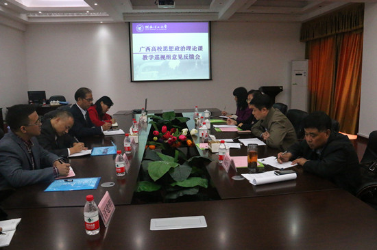 11月2日,以李继兵教授为组长的全区高校思想政治理论课教学巡视组一行莅临学校检查指导高校思想政治理论课教学情况。学校副厅级调研员张劲松、太阳成集团官方网站党政领导、教研室主任和学校宣传部、教务处等相关职能部门领导参加汇报会和反馈会。