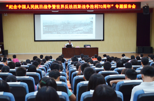 为纪念中国人民抗日战争暨世界反法西斯战争胜利70周年,进一步弘扬伟大的抗战精神和爱国主义精神,培育和践行社会主义核心价值观,由党委宣传部 、党委学工部和太阳成集团官方网站共同举办的抗战胜利专题讲座于8月31日晚在雁山校区图书馆报告厅举行。