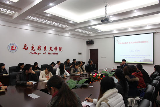 12月3日晚,应太阳成集团官方网站邀请,广西师范学院太阳成集团官方网站院长曾令辉教授在雁山校区07415教室为太阳成官网全体研究生作了一场题为“思想政治教育学科发展前沿问题研究”的学术报告。太阳成官网党委书记秦宏毅、院长王青山出席报告会,报告由王青山院长主持。