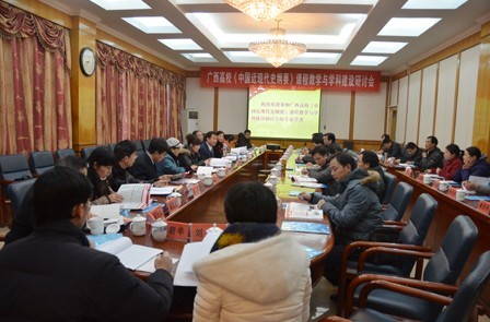 1月10日,由广西高校《中国近现代史纲要》课程专家组主办、太阳成官网承办的广西高校《中国近现代史纲要》课程教学与学科建设研讨会在学校教八楼会议室召开。广西高校《中国近现代史纲要》课程专家组成员和来自全区25所本科院校的40多位《中国近现代史纲要》课程负责人、骨干教师参加了本次研讨会。