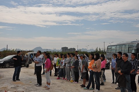 为使实践团成员更好地到临桂新区的实际建设情况,管委会还专门带领实践团深入到工程建设基地进行参观。在建中的“一院(戏剧院)两馆(博物馆、图书馆)”——临桂新区文化活动中心,融合了古今中外的多元文化元素,颇具汉唐风韵而不失现代气息。随后,实践团参观了在建中的临桂新区政务活动中心。据了解,为响应中央提倡节约的号召,本着廉洁廉政的目的,政务活动中心还配备有供市民休闲娱乐的中心广场,将成为桂林未来新地标。