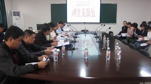 会议由肖祥副院长主持。他向新入学的研究生详细的介绍了导师的基本情况,使新生对导师有了进一步的认识和了解,也为学校实施的导师和研究生的双向选择工作奠定基础。陶柱标教授用“信念、入门、转换”概括表达了对新生们生活学习的期望。希望新入学的研究生们要坚定马克思主义信念,要认真学懂,认真领会,用心思考,尽快完成从大学生到研究生角色的转换,定下研究方向,有了明确的定位才能做出优异的学术成绩。党委书记兼常务副院长王青山简要介绍了学院的基本情况以及今后的发展目标,使学生对学院有了更深的认识。