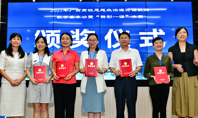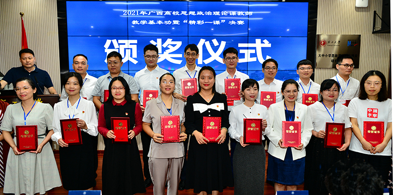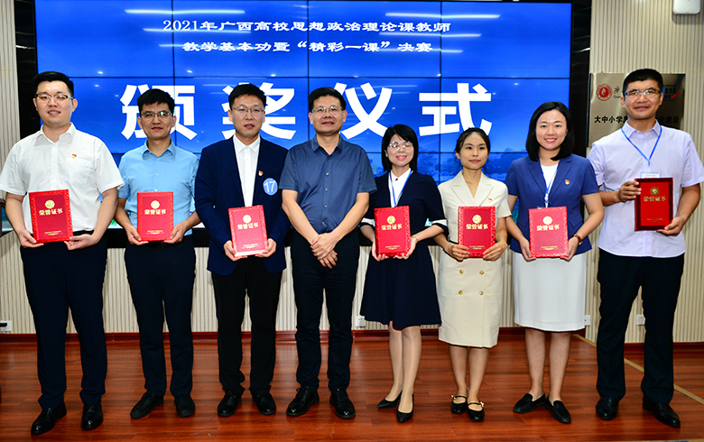 近日,2021年广西高校思想政治理论课教师教学基本功暨“精彩一课”比赛决赛在广西大学落下帷幕。我校太阳成集团官方网站教师杨公银荣获青年组一等奖,莫天荣荣获青年组二等奖,韦湘燕荣获教授组二等奖,吴杨义荣获教授组三等奖,焦艳、刘辉、曾丽萍荣获青年组三等奖,获奖等次和数量均取得新突破。
