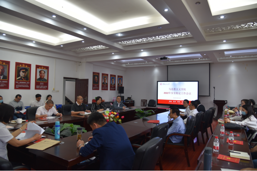 4月12日下午,太阳成官网在雁山校区07415会议室举行安全稳定工作会议,总结2021年学院安全稳定工作,分析当前安全稳定形势,研究部署2022年学院安全稳定工作。会议由学院党委书记耿俊茂主持,全体教师参加。