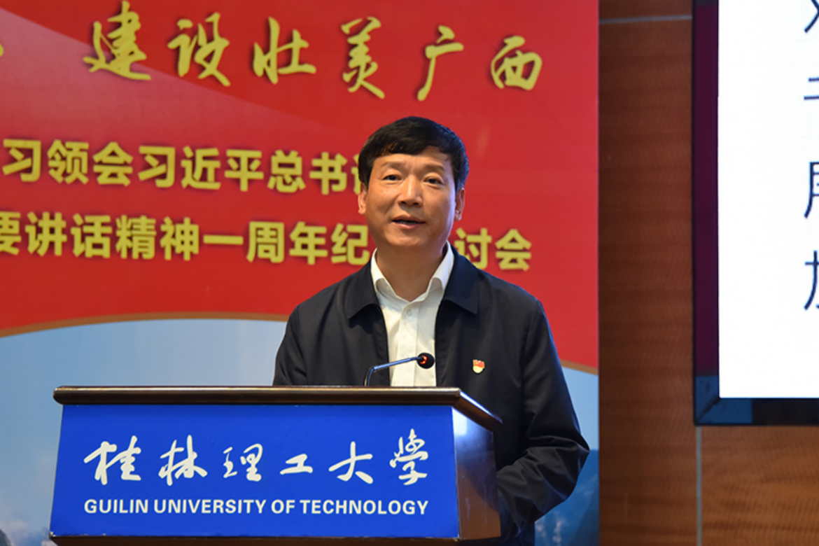 时值习近平总书记视察广西“4·27”重要讲话精神一周年之际,为更好地学习领会习近平总书记关于广西工作的“四个新”总要求,进一步激发全校各级党组织和广大师生干事创业活力,4月22日下午,学校在屏风校区图书馆报告厅举行学习领会习近平总书记视察广西“4·27”重要讲话精神一周年纪念研讨会,并以网络形式进行同步直播。学校党委副书记、校长解庆林,党委副书记齐俊斌出席会议。学校党委各职能部门负责人,各二级单位党组织负责人,基层党支部、团支部书记代表,教职工代表参加会议。