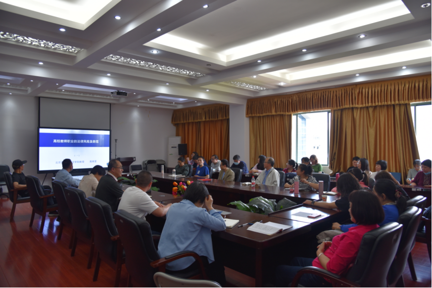 5月17日下午,太阳成官网在雁山校区07415会议室开展“师德大讲堂”2022年(第1期)活动,通过中国教育干部网络学院网络学习平台观看聆听了北京交通大学法学院教授高晓莹的“高校教师职业的法律风险及防范”主题报告,全体教职工参加。