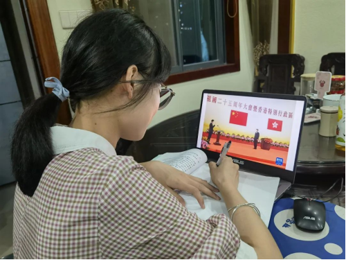 马克思主义理论2020级硕士研究生邱晓锦:一百余年来,中国共产党带领全体中华儿女,在中华民族伟大复兴的历史征程上谱写了波澜壮阔的英雄诗篇;25年来,香港在“一国两制”方针下,背靠祖国、面向世界,获得许多有利发展条件和独特竞争优势,实现长期繁荣、稳定、发展。事实证明,只有坚定不移推进“一国两制”才能够更好地凝聚民族力量,进而实现中华民族伟大复兴的中国梦。作为一名研究生党员,我将紧紧围绕在以习近平同志为核心的党中央周围,坚决拥护“一国两制”方针和“爱国者治港”原则,加强自身政治素养,不断提升自身能力,以实际行动为实现中华民族伟大复兴贡献青春力量!
