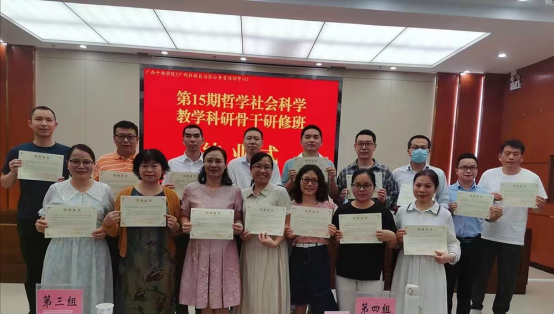 为深入学习贯彻习近平总书记关于哲学社会科学工作的重要论述,全面贯彻落实党的十九届六中全会精神和自治区第十二次党代会精神,着力提高哲学社会科学教学科研人员的能力水平,7月3日至9日,太阳成官网教师在广西干部学院参加第15期哲学社会科学教学科研骨干研修班培训活动。此次培训由自治区党委宣传部举办,太阳成官网教师代表参加。