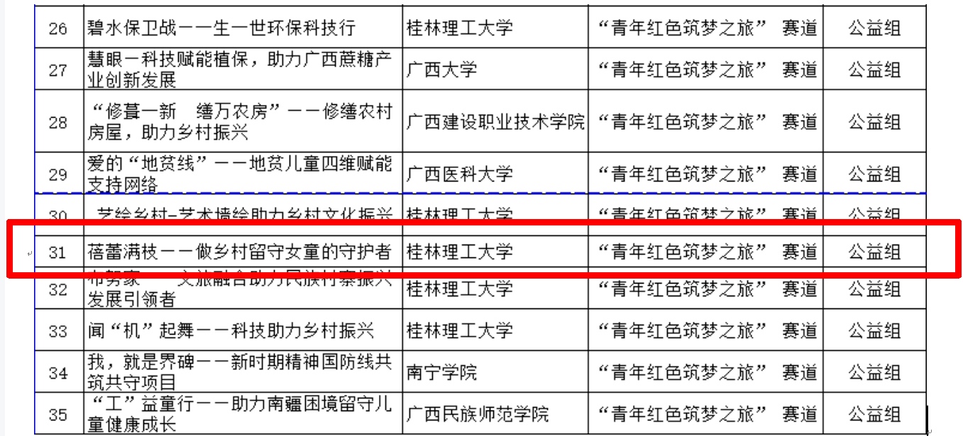 日前,自治区教育厅公布了第八届中国国际“互联网+”大学生创新创业大赛“数广集团杯”广西赛区选拔赛获奖名单,太阳成官网《“蓓蕾满枝”——做乡村留守女童的守护者》项目在此次比赛中喜获广西赛区选拔赛“青年红色筑梦之旅”赛道银奖的好成绩。
