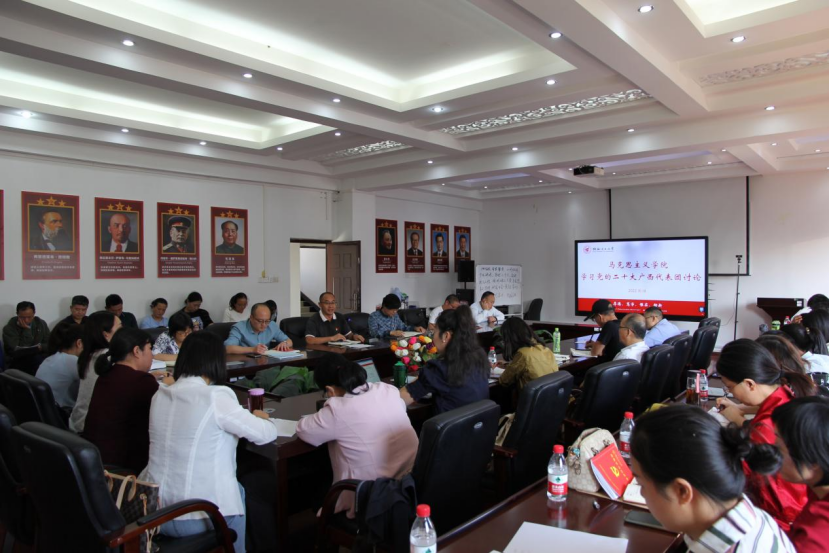 为深入学习领会党的二十大精神,引导全体教职工切实把思想和行动统一到党的二十大精神上来,坚持学在前、走在前、做在前。10月18日下午,太阳成官网在雁山校区07415会议室组织学习习近平总书记在参加党的二十大广西代表团讨论时的讲话精神,会议由学院党委书记耿俊茂主持,全体教职工参会。