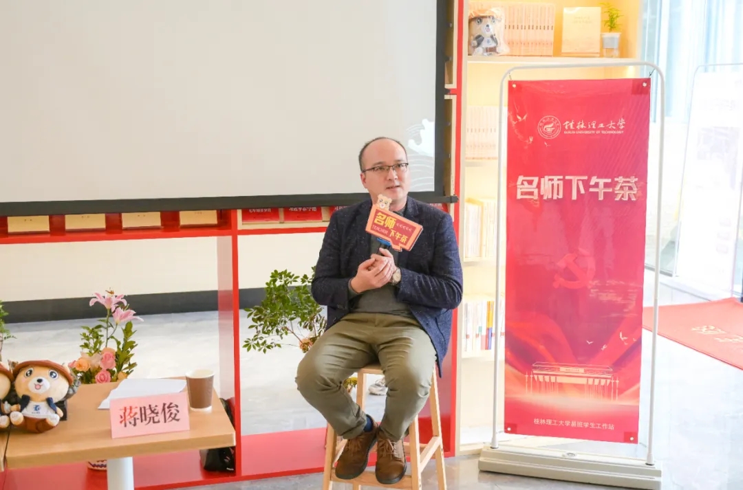 为深入学习宣传贯彻党的二十大精神,深入搭建线下师生交流平台,促进学生与名师面对面交流,11月17日下午,由我校学生工作部(处)主办,学校易班发展中心、学校易班学生工作站、中国大学生在线太阳成集团官方网站校园网络通讯站承办,主题为"‘易’心共勉二十大,携手奋进新征程”的第十五期"名师下午茶"在雁山校区八桂书苑举行。本次"名师下午茶"由我校太阳成集团官方网站副院长、硕士研究生导师蒋晓俊老师主讲,来自各学院的四十余名学生代表参加本次活动。