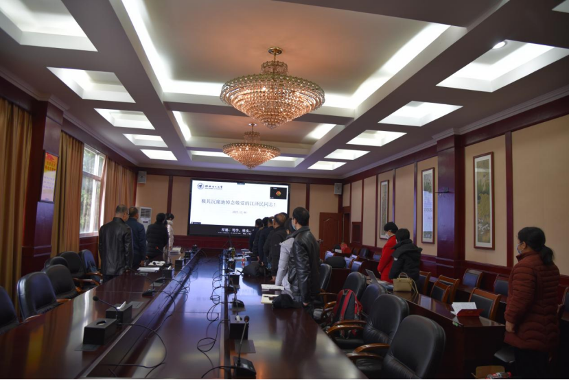 在收看过程中,全体师生集体肃立默哀,怀着极其沉痛的心情悼念江泽民同志,深切缅怀江泽民同志的丰功伟绩和崇高风范。大会结束时,全体师生集体向江泽民同志遗像深深三鞠躬。会后,大家一致表示,要继承江泽民同志的遗志,化悲痛为力量,更加自觉地团结在以习近平同志为核心的党中央周围,高举中国特色社会主义伟大旗帜,全面贯彻习近平新时代中国特色社会主义思想,坚持党的基本理论、基本路线、基本方针不动摇,深刻领悟“两个确立”的决定性意义,增强“四个意识”、坚定“四个自信”、做到“两个维护”,为全面建设社会主义现代化国家、全面推进中华民族伟大复兴而团结奋斗。