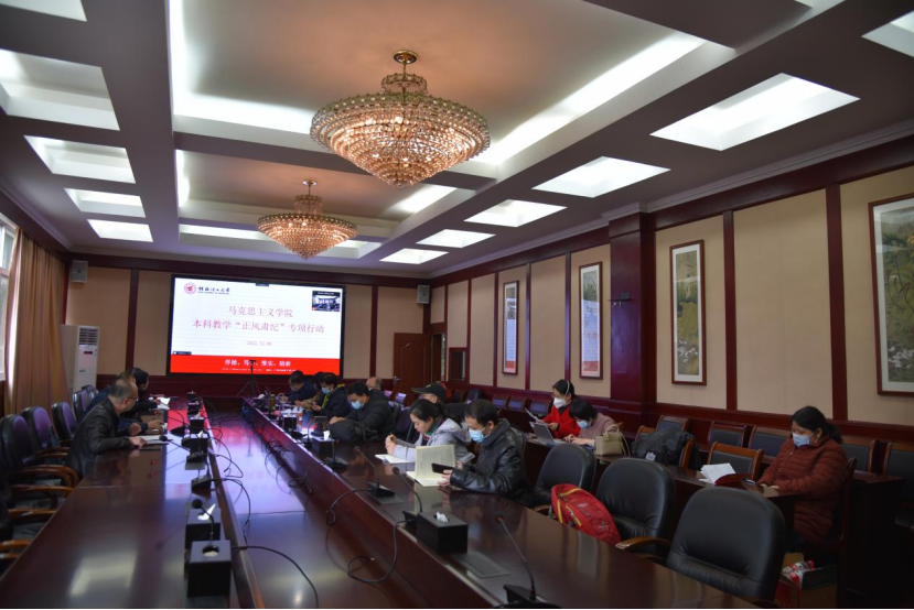 根据学校2022年12月1日发布的关于开展本科教学“正风肃纪”专项行动的通知(桂理工教务[2022]177号)文件要求,学院及时作了工作部署,认真组织教师做好此项工作。2022年12月6日下午,太阳成官网组织全体教师开展本科教学“正风肃纪”的专项行动。