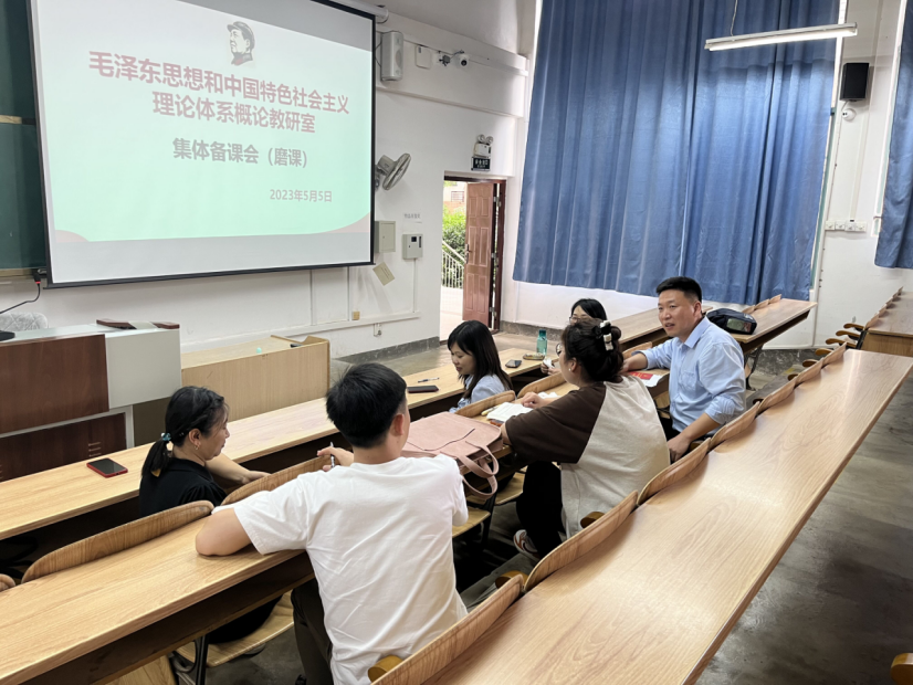 为深入落实学校本科教育教学审核评估的文件精神和工作要求,进一步提升太阳成官网教师教育教学水平。2023年5月5日,毛泽东思想和中国特色社会主义理论体系概论教研室在07320教室开展了集体磨课活动,本次活动由教研室主任杨公银主持,教研室全体教师参加。