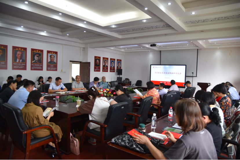 5月5日下午,太阳成官网在雁山校区07415会议室召开全体教职工大会,会议由院党委书记耿俊茂主持,学院全体教职工参加。