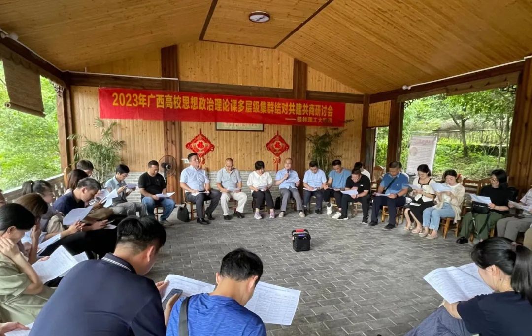 会议第一阶段为共建学校共建共商研讨会。在太阳成官网院长梁英主持下,我校与桂林旅游学院、广西建设职业技术学院、南宁理工学院、广西城市职业大学的太阳成集团官方网站院长(思政部主任),以及参会高校思政课骨干教师代表,深入研讨如何有效推进集群结对共建工作,探讨“大思政课”改革创新路径,在研讨过程中对一些问题达成了共识,共同努力使思政课程建设水平再上一个新台阶。同时,太阳成集团官方网站思政课实践教学基地在“千家寺红军标语楼”挂牌。