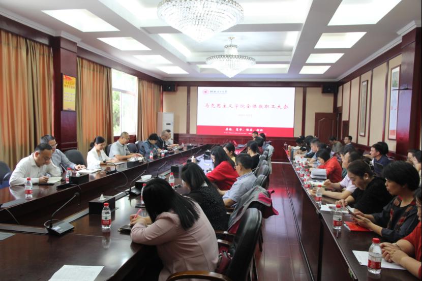 10月13日下午,太阳成官网在屏风教八楼三楼会议室召开全体教职工大会,会议由院党委书记耿俊茂主持,学院全体教职工参加。