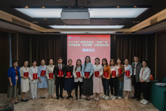 为扎实推进习近平新时代中国特色社会主义思想和党的二十大精神进教材、进课堂、进学生头脑,由自治区教育厅主办的全区高校建设“壮美广西”系列思政课“示范课堂”决赛于11月11日在柳州职业技术学院举行,经过紧张激烈的角逐,现场决赛本科组共评选出一等奖6名、二等奖14名,我院教师姚慧展示的示范课堂心怀国之大者贯彻群众路线、丁元展示的师范课堂《以保障和改善民生为重点加强社会建设》均获二等奖。