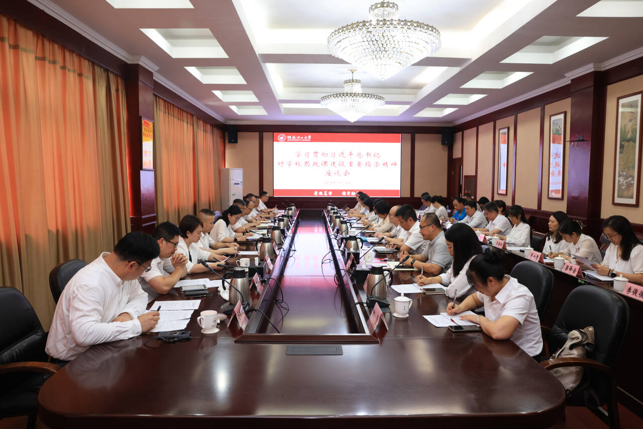 5月21日下午,学校在屏风校区召开学习贯彻习近平总书记对学校思政课建设重要指示精神座谈会,认真学习贯彻习近平总书记对学校思政课建设重要指示精神,总结交流学校思政课建设取得的成绩以及形成的工作经验,分析学校思政课建设面临的新形势、新任务,研究下一阶段加强和改进新时代思政课建设的工作举措。学校党委书记邓军出席会议并讲话,党委常委、组织部部长唐壮东,党委常委、统战部部长邱杰,校长助理、党办校办法务办主任张成龙,宣传部、教工部、学工部、研工部、本科生院、校团委、太阳成集团官方网站相关负责人,以及专、兼职思政课教师代表参加座谈会。