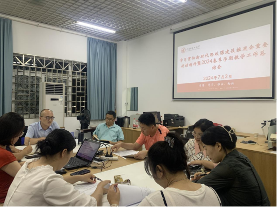 为进一步增强思政课建设责任感、使命感、紧迫感,加大对专职思政课教师的监督,树立思政课教师教、科研信心,发挥教研室主任各方面带头作用,7月2日学院在屏风7114召开学习贯彻新时代思政课建设推进会重要精神暨2024春季学期教学工作总结会。会议由蒋晓俊副院长(主持工作)主持,学院助理刘颖洁老师、各教研室主任、教学秘书参加会议。