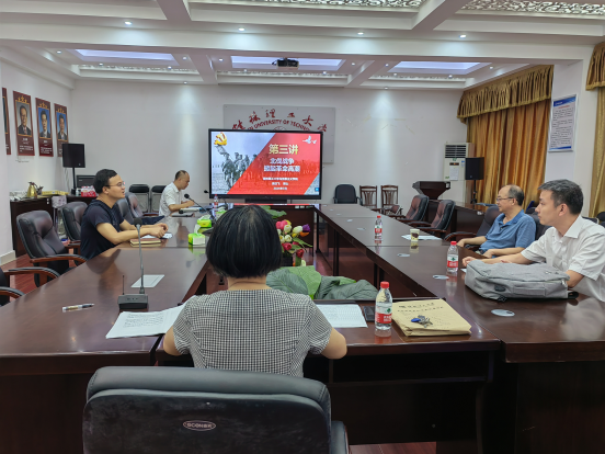 凌日飞博士做《北伐战争掀起革命高潮》专题讲课,以国民大革命时期中国共产党对大革命的影响为教学主线,通过教学情景导入、时代背景介绍、教学重点分析以及生动的党史故事,深入进行教学展示。课后,与会教师就凌日飞博士的讲课内容展开交流和研讨,并分别从优化教学内容、创新教学方法、拓宽教学思路等方面提出了建议。