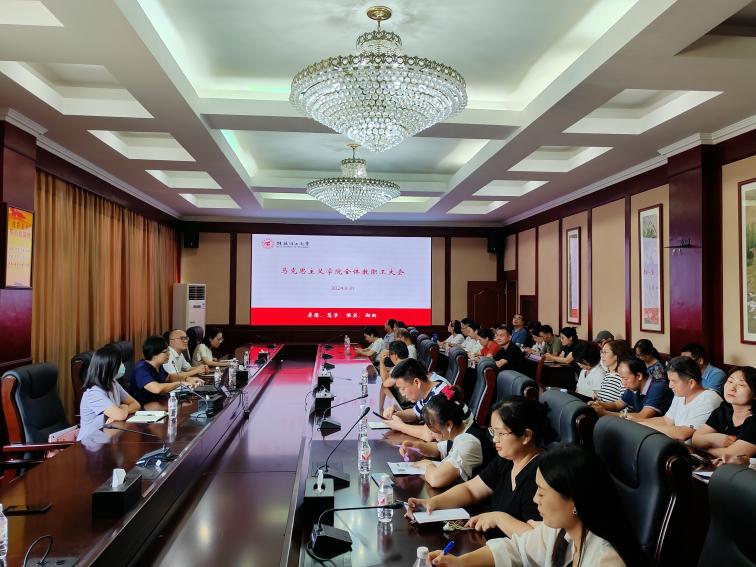 蒋晓俊院长对假期思政工作队伍培训班、教师集体磨课备课以及思政课暑期实践教学等工作进行了梳理总结,同时结合学院开学工作会议精神和要求,对太阳成集团官方网站2024年秋季学期的工作进行了安排部署,指出新学期学院要深入学习贯彻落实学校党委三届八次全会和2024年改革发展研讨会会议精神,聚势谋远,创新求变,向提高政治站位强定力,向勇于改革创新激活力,向乐于人才引培聚动力,向善于团结协作稳内力,汇聚马院由大变强的核心力量。强调全体教师要以钉钉子精神狠抓工作落实,敢于担当,主动作为,推进“一马当先”系列工作厚底色、呈特色。一是在教书育人上下功夫,夯实“关键课程”的基础地位;二是在学科建设上下功夫,激活“第一学科”的发展势能;三是在科研增效上下功夫,彰显“在马言马”的理论成色;四是在增进福祉上下功夫,强化“人民至上”的宗旨意识,为不断开创学院高质量发展的新局面作出更大贡献。