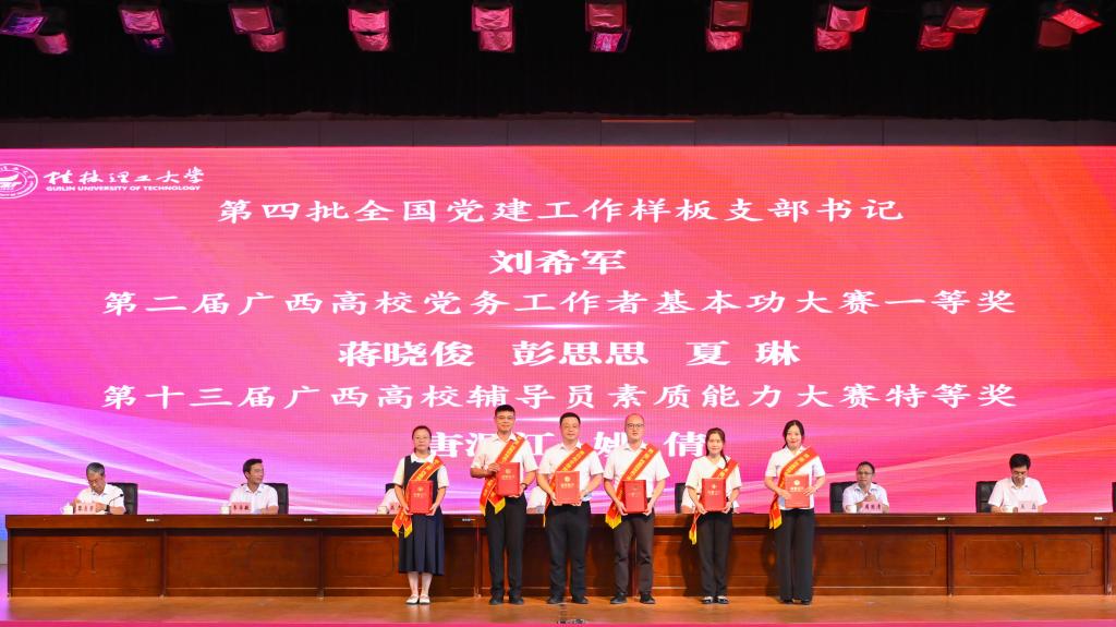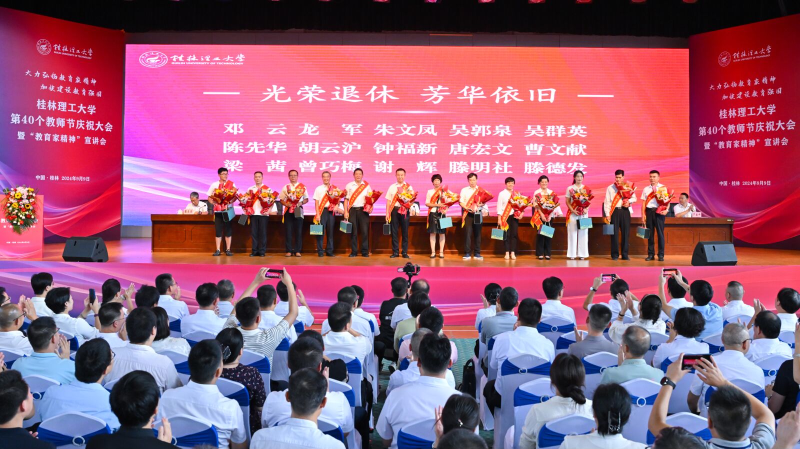 学院教师接受教师节表彰。9月9日下午,在学校举行的第40个教师节庆祝大会暨“教育家精神”宣讲会上,学校领导为第二届广西高校党务工作者基本功大赛一等奖获得者蒋晓俊颁奖、为近期荣休的梁茜老师举行了荣休仪式
