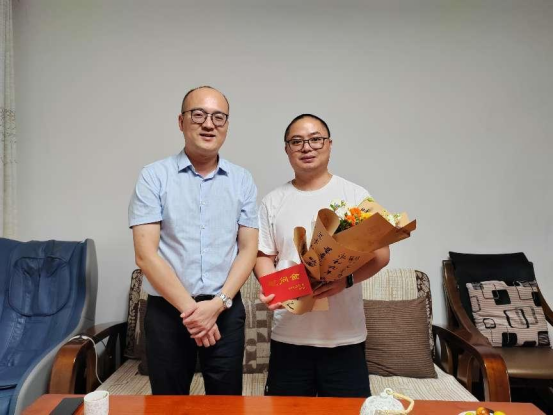 慰问优秀教师代表。9月8日下午,学院院长蒋晓俊、学院党委副书记马彬彬带着学院的亲切关怀,走访慰问了优秀教师代表吴杨义副教授,送上鲜花和节日祝福。在优秀教师吴杨义家,蒋晓俊对他为学院发展所做的努力给予充分肯定,对他辛勤的付出表示衷心的感谢,并勉励他再接再厉,为学院发展再立新功。