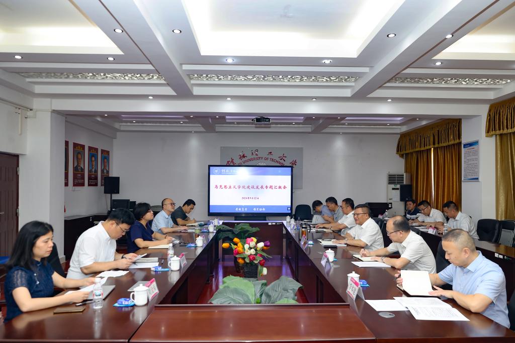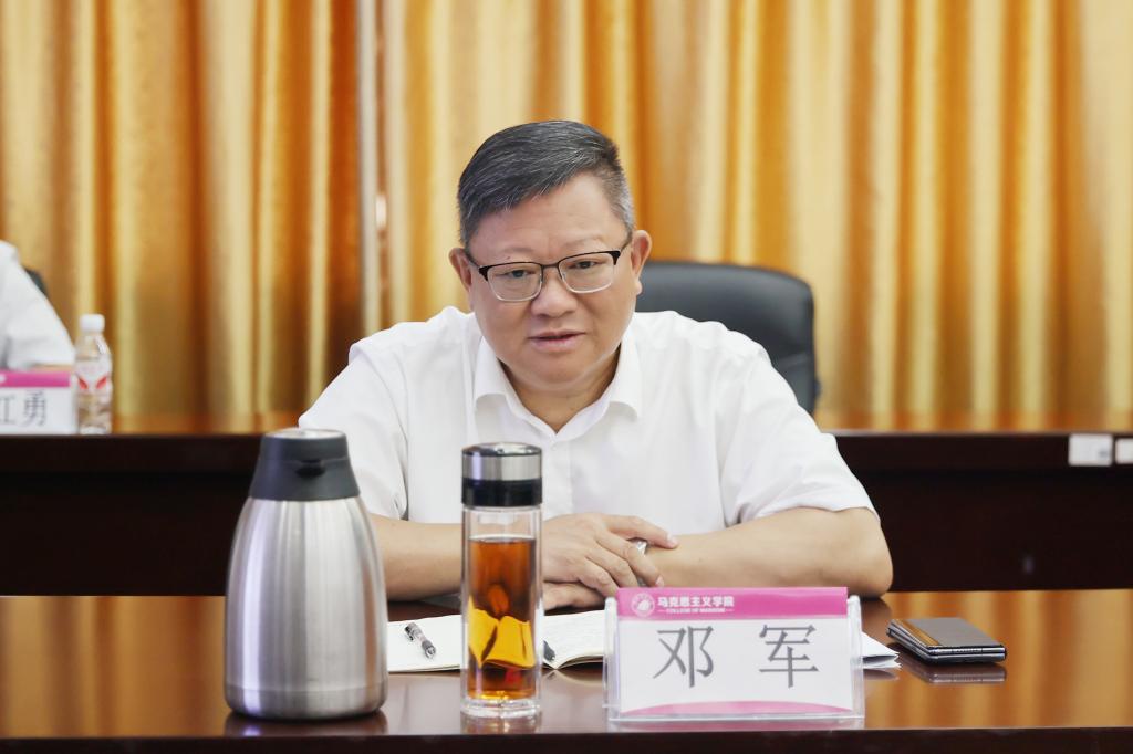 邓军认真听取了太阳成集团官方网站负责人关于用高质量党建引领学院高质量发展的主要举措和成效、学科建设发展总体思路、博士点申报以及人才工作等方面情况的汇报,对太阳成集团官方网站的建设发展理念、思路清晰、以向上向好的态势取得的成绩给予充分肯定。邓军指出,要持之以恒、久久为功,以钉钉子的精神推动事业高质量发展;在充分肯定成绩的基础上,正视短板和弱项,坚定信心和决心,增强责任感和紧迫感,进一步准确把握好面临的新形势、新任务、新挑战,乘势而上、精耕细作、以质图强,奋力开创马学科思政课建设的新局面。邓军强调,要始终坚持党的全面领导,加强党的建设,以高质量的党建来引领推动保障事业的发展;要在加强领导班子建设上下功夫,发挥班子的凝聚力、战斗力、感召力,发挥班子团结,做志同道合好同事,推动学院发展;要建设“山清水秀、风清气正”的政治生态,推动学院学科发展,谋事、干事、成事的氛围更加浓厚;要抓奋发有为的干部人才队伍建设,建设朝气蓬勃的基层组织;要坚定不移抓好人才工作,全方位地做好培养人才、引进人才、用好人才,以教育家精神引领高素质专业化教师队伍建设;要坚定不移持续发力,加强学科建设,提升核心竞争力;要全力以赴加强科研工作,尽快取得突破性进展,为学院建设打下坚实的基础;要坚定不移贯彻落实党的二十届三中全会精神和学校改革发展研讨会精神,以更大的魄力、更有力更坚定的态度、更有效的措施来推进学院的综合改革;要统筹高质量发展与安全的重要关系,以马院的安全稳定为学校的安全稳定做贡献;要做好对内对外的宣传,讲出桂工马院的声音。