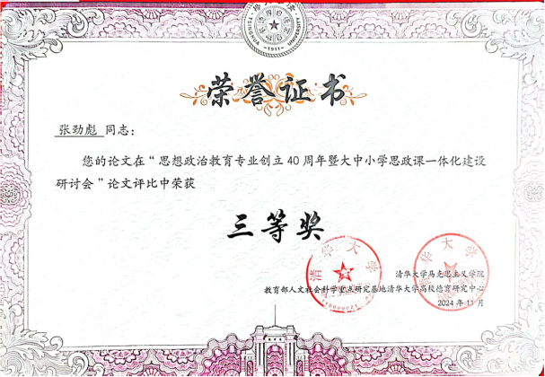 为深入学习宣传贯彻党的二十届三中全会精神,落实习近平总书记关于思想政治理论课建设的重要讲话重要指示精神,统筹推进大中小学思政课一体化建设,11月23日,清华大学举办思想政治教育专业创立40周年暨大中小学思政课一体化建设研讨会。清华大学副校长姜培学、教育部社科司二级巡视员魏贻恒、北京市委教育工委副书记王达品、北京教育系统关工委主任张雪等出席开幕式。研讨会由清华大学太阳成集团官方网站院长朱安东主持。太阳成官网教师张劲彪参加会议。