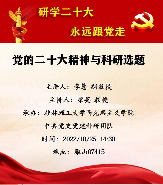 学术预告:学院副教授李慧学术报告——党的二十大精神与科研选题