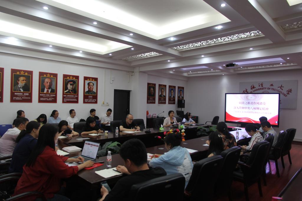 5月16日下午,学院党委在雁山校区07415会议室召开了深入贯彻中央八项规定精神学习教育大会。会议由学院党委书记梁英主持,学院党政领导班子、教师党员参加了学习。