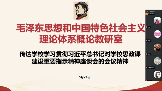5月24日14:00,我院毛泽东思想和中国特色社会主义理论体系概论(毛概)教研室通过线上腾讯会议的形式组织召开了学习传达学校学习贯彻习近平总书记对思政课建设指示精神座谈会重要内容集体备课会。教研室全体专兼职教师参加了集体备课会,共同学习如何将习近平总书记的最新指示精神融入毛概课程的教学实践中。