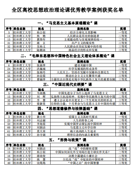 思想政治理论课是落实立德树人根本任务的关键课程,学校党委一直高度重视思想政治理论课课程建设。学院为提高思想政治理论课的教学质量和水平,采取了一系列的措施和手段,极大推动和促进了我校思想政治理论课教师投入教学的热情,此次全区高校思想政治理论课优秀教学案例评选活动所获得的成绩,只是学院促进思想政治理论课教学提升的一个缩影。相信通过学校各个层面特别是思想政治理论课教师的进一步努力,我校的思想政治理论课将更好的体现“全面贯彻党的教育方针、落实立德树人根本任务的主干渠道,引导大学生树立正确的世界观、人生观、价值观。”的课程特性。
