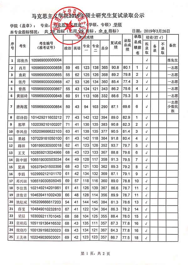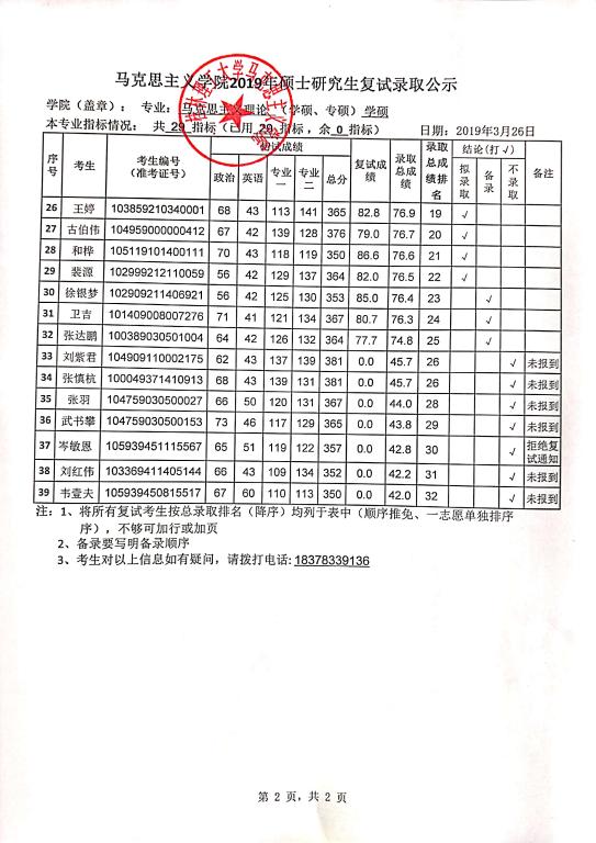 太阳成集团官方网站2019年硕士研究生复试录取公示