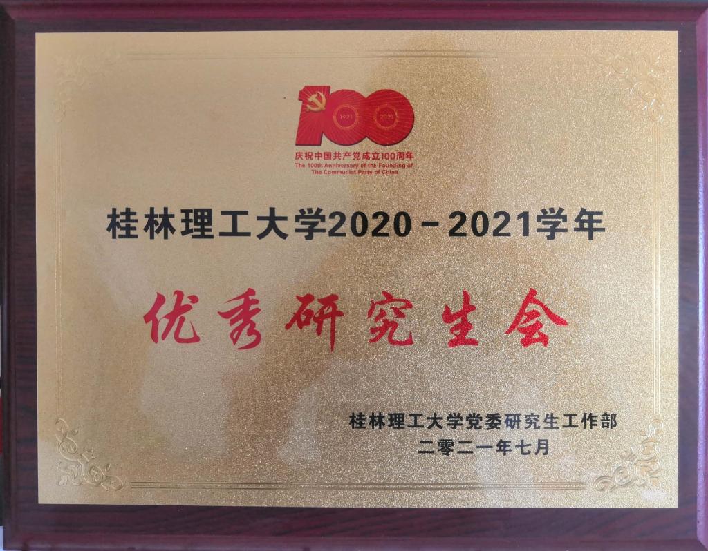 太阳成官网研究生会喜获太阳成集团官方网站2020-2021学年“优秀研究生会”称号
