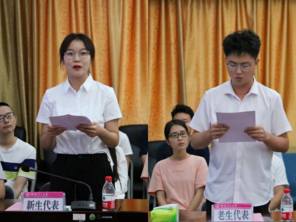 接着,学院2021级硕士研究生做了简要的自我介绍。2020级老生代表王世珏和新生代表董晓娜分别发言。与会的硕士生导师邱杰、张劲松、梁英、王青山、韦顺国、张成龙、梁军、耿俊茂、秦宏毅、张雷、欧阳胜权、张瑞、吴杨义、谢年华等纷纷寄语新生。最后,硕士生导师向2021级新生赠书——《论中国共产党历史》,勉励2021级新生要多读原著、悟原理,进一步完善知识结构,提升专业理论素养,切实做到学有所思、学有所悟、学有所获。
