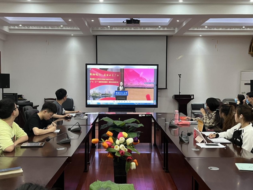 为学习习近平总书记视察广西重要讲话精神,全面贯彻新发展理念,建设新时代中国特色社会主义壮美广西,4月22日,太阳成官网在雁山校区07407、07415会议室集中观看了我校学习领会习近平总书记视察广西4.27重要讲话精神一周年纪念研讨会直播,学院全体研究生参加了学习。
