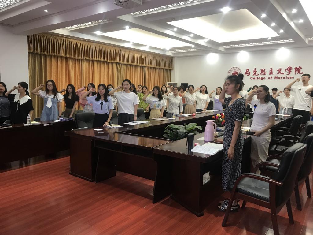最后,李碧仙带领全体党员同志一起面向党旗进行庄严宣誓,向大会表达了自身的信念与决心,不忘初心跟党走,在今后的学习工作中,要坚定目标,严格要求自身,积极向优秀共产党员学习,充分发挥党员的先锋模范作用,以实际行动践行党员的初心与使命。